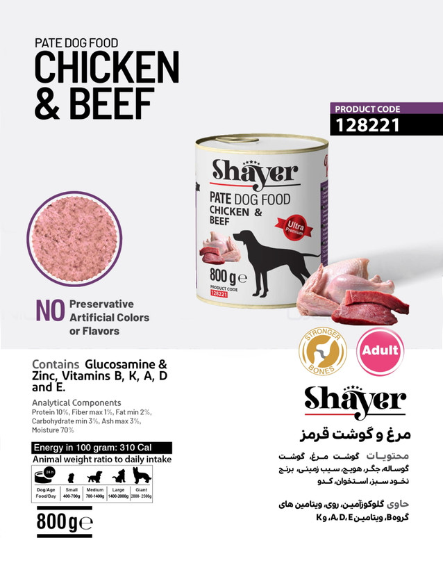 کنسرو پته مرغ و گوشت قرمز شایر سگ (قوطی ۸۰۰ گرمی)